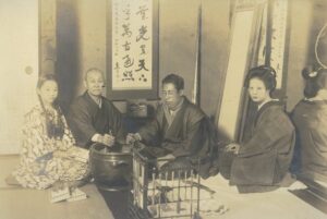 写真は昭和13年。右より妻・茂野、彦造、父・浅次郎、長女・浅子。