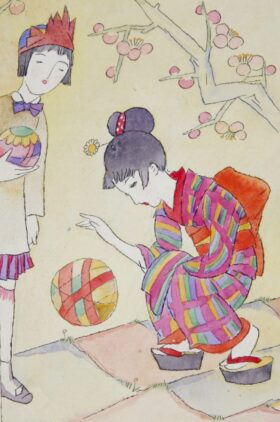 | まりつき 1927年 〈水彩画〉コーナーで展示 |
